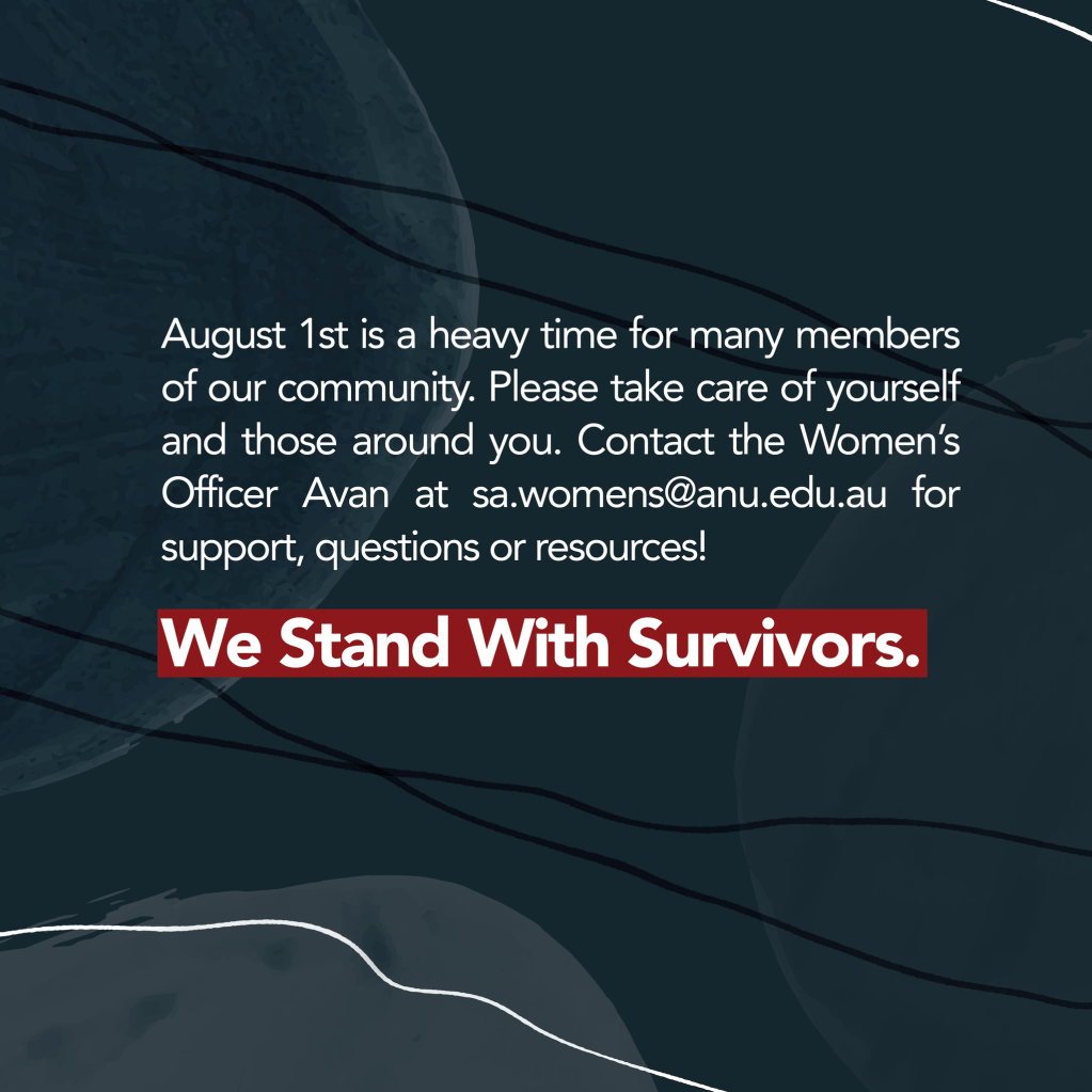 On August 1st 2017, the Australian Human Rights Commission released the Change the Course report detailing the sexual violence and sexism rampant in Australian universities. The survey results revealed that ANU ranked 1st in the country for incidents of sexual harassment and 2nd for sexual assault. Women with disabilities, international students, queer women, transgender women, BIPOC women and gender diverse people were disproportionately victimised and faced additional barriers to accessing support.